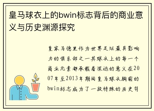 皇马球衣上的bwin标志背后的商业意义与历史渊源探究